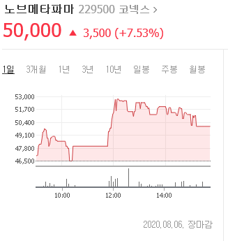 신약개발 기업 노브메타파마의 자회사 노브메타헬스가 '사이토카인 방출 증후군' 치료제 후보물질 특허를 받았다는 소식에 강한 추세를 보였습니다.