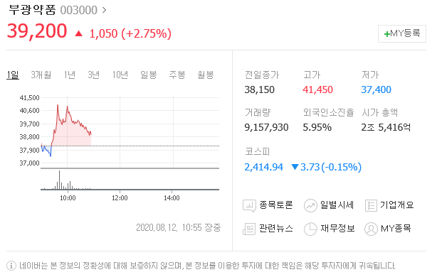 부광약품이 코로나 바이러스 치료효과에 대한 특허가 등록되었다는 뉴스에 사람들이 관심이 많아졌습니다.